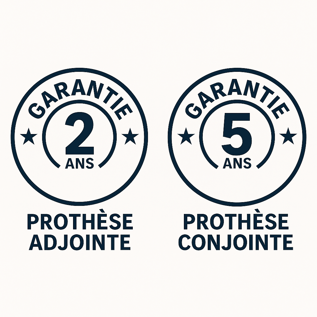 Parce que la confiance se construit dans le temps, toutes nos prothèses conjointes sont garanties 5 ans et nos prothèses adjointe garanties 2 ans. Sérénité assurée pour vous et vos patients.